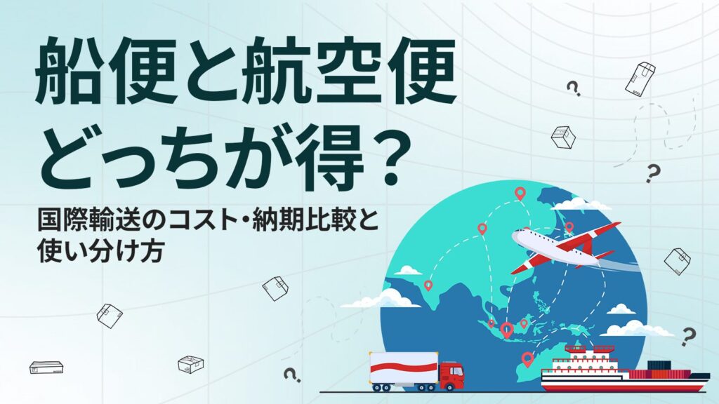 「航空便と船便のコストと納期の違いは?」「航空便と船便の効果的な使い分け方を知りたい」 国際輸送の手段である航空便と船便。それぞれにメリット・デメリットがあり、どちらを選ぶか迷う方も多いことでしょう。 そこで本記事では、航空便と船便の違い... -